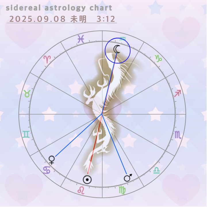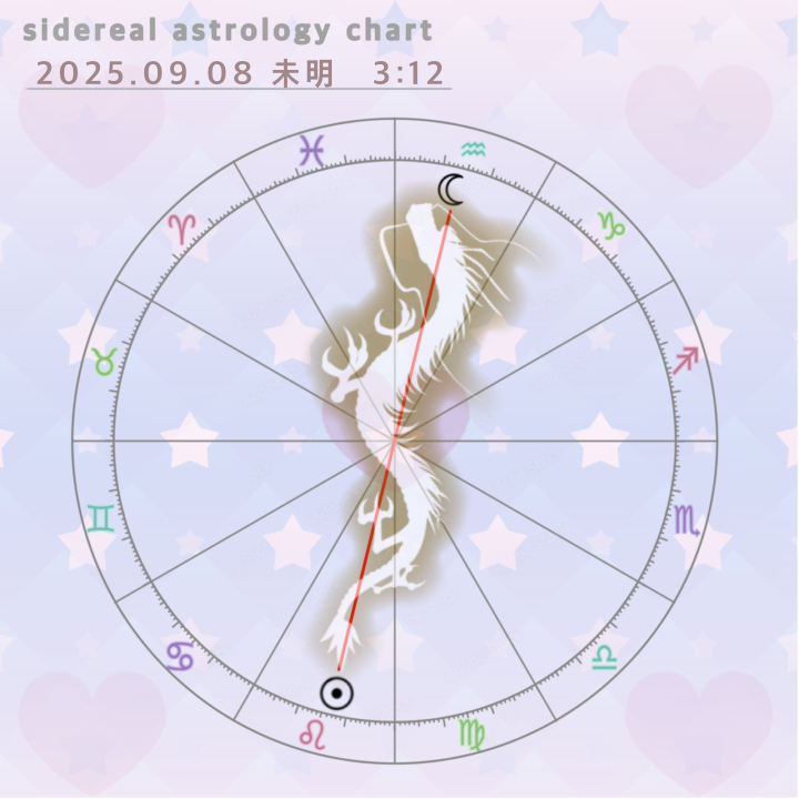 太陽(しし座)+ドラゴンテイル 月(みずがめ座)+ドラゴンヘッド