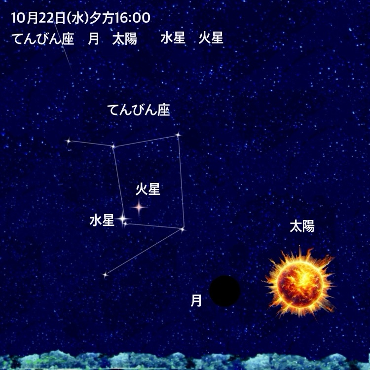 ・05時24分:水星と火星が最接近(てんびん座)