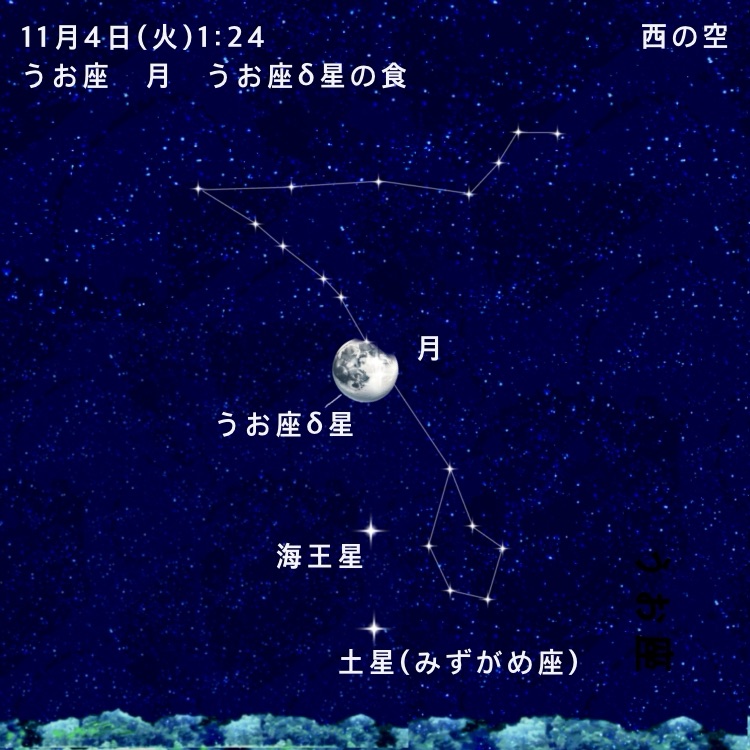 ・01時24分:うお座δ星(4.4等)の食