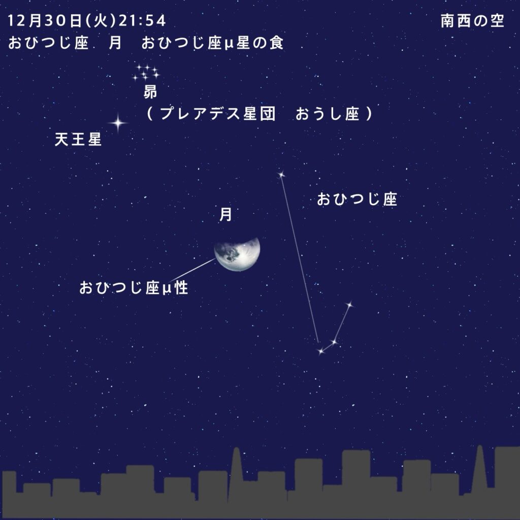 ・21時54分:おひつじ座μ星(5.7等)の食